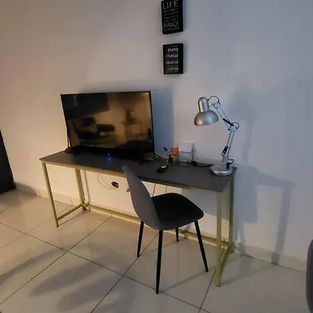 Et værelse har et skrivebord, kaffe- og tefaciliteter, et fladskærms TV med satellitkanaler, mens køkkenet også indeholder kaffemaskiner/tekedler og et køleskab.